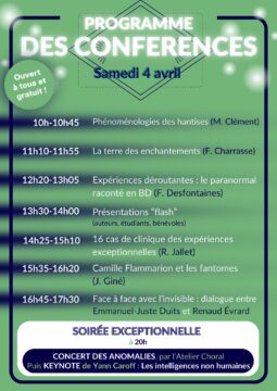 « Le Festival des Anomalies est un événement culturel et scientifique grand public qui explore les frontières du savoir, de la perception et de l’expérience humaine. Il propose conférences, moments ludiques, ateliers pratiques, expositions et performances autour des phénomènes dits « atypiques » : expériences exceptionnelles, conscience, créativité, intuition, paranormalLe champ des phénomènes susceptibles de relever de la paranormalité est plus ou moins étendu suivant l'idée même que l'on se fait de ce qui est censé être normal ou pas. Une fois éliminé ce qui relève de l' « anormal » et qui renverrait plutôt au dérèglement, voire au pathologique, il reste un domaine assez vaste de phénomènes ou d'expériences étranges, difficilement explicables, qualifiés bien souvent de paranormaux. Les limites de ce corpus de phénomènes sont destinées à être floues puisqu'elles dépendent étroitement de l'idée qu'à une époque et dans une culture données on se fait du «normal », de l'« explicable» et du «possible ». Prenons un premier exemple, bien connu des historiens des sciences. On a longtemps considéré que les météorites n'existaient pas, puisque des «pierres ne pouvaient pas tomber du ciel ». Pourtant de nombreux témoignages rendaient compte de leur existence, avant que la science classique ne les reconnaisse. Ces « pierres » semblent paranormales pour qui ne dispose pas des concepts adéquats permettant de les accepter en tant qu'objets «dignes de science ». Un deuxième exemple aidera à comprendre le relativisme indispensable dès que l'on tente d'appréhender culturellement la paranormalité. Dans les sociétés traditionnelles africaines, il est très classique de considérer qu'à l'aide de pratiques sorcières un sort ait pu être jeté, faisant ainsi une ou plusieurs victimes. L'idée de l'influence occulte à distance ne pose alors pas problème et fait partie des faits possibles, repérés comme causes envisageables du mal et du malheur. L'action sorcière est donc exclue d'une logique paranormale stricto sensu puisque complètement intégrée dans les croyances populaires. Il est d'ailleurs intéressant de noter que, pour bon nombre de nos contemporains vivant en Europe occidentale, cette conviction est encore très présente. Une fois posé ce nécessaire relativisme, il semble que l'on puisse dégager à notre époque quatre manières dominantes d'aborder le concept de paranormal: « sceptique », «fourre-tout », «parapsychologique» et « holistique ». Pour les sceptiques, le paranormal n'existe pas en tant que tel. Il renvoie à d'autres catégories. Le paranormal n'est qu'apparent. Il peut s'agir en fait d'illusions, de trucages consciemment organisés ou de perceptions inconscientes dont d'éventuels témoins ont été victimes en toute bonne foi. Dans cette optique, des faits inexpliqués peuvent bien être reconnus, surtout s'ils sont reproductibles, mais ils doivent trouver leur place au sein d'interrogations portées logiquement par la science. Les tenants de cette manière d'envisager les choses sont souvent qualifiés de «scientistes», tant ils semblent attachés à une vision du réel correspondant exclusivement aux données les plus classiques et reconnues de la science. Leurs références privilégiées se trouvent du côté d'une épistémologie se définissant comme «cartésienne» ou «rationaliste ». Ce qui n'est pas sans poser question. En effet, en choisissant de délimiter d'une façon plus ou moins arbitraire des objets d'étude considérés comme rationnels et d'autres qui, ne l'étant pas, ne méritent pas que l'on s'y attarde, il n'est pas dit que l'on choisisse le camp de la raison. Le risque encouru est de se débarrasser d'un certain nombre de phénomènes gênants au prix d'une amputation d'un réel que l'on peut supposer toujours plus complexe que l'idée que l'on peut s'en faire. En France, Henri Broch est sans doute le représentant le plus connu de ce courant de pensée s'appuyant sur la « zététique », se voulant « science du doute ». À l'apparent opposé de l'approche précédente, le paranormal est parfois envisagé comme un gigantesque fourre-tout, où tout «mystère» est traité sur un pied d'égalité et dans une logique du « tout existe et tout est ton », sans réflexion épistémolologique sur le niveau de réalité susceptibles d'être mis en jeu suivant les «faits » invoqués. Se côtoient, pêle-mêle, les phénomènes dits paranormaux étudiés par les parapsychologues, la cryptozoologie (étude des animaux rares et mystérieux), l'ufologie et, d'une façon plus large, tout phénomène réputé extraordinaire, inexplicable ou mystérieux: triangle des Bermudes, archéologie sacrée, civilisations disparues, ésotérisme, occultisme, sociétés secrètes, etc. Dans ce cadre, où dominent l'amalgame et l'hétérogénéité, les phénomènes étudiés sont accueillis au milieu d'un ensemble baroque qui pèche indiscutablement par son manque d'unité, du moins vu sous un épistémologique. En revanche, en terme sociologique on pourrrait reconnaître une certaine pertinence de recoupement. En effet, le même statut parascientifique réservé à l'ensemble des phénomènes concernés (puisque dans l'optique scientiste évoquée précédemment « rien n'existe et rien n'est bon »). De plus, des travaux sociologiques ont bien montré la proximité des représentations et croyances que l'adhésion à plusieurs de ces phénomènes implique. Très souvent, le terme « paranormal» est employé de façon plus restrictive pour désigner les phénomènes dits paranormaux étudiés par les parapsychologues, regroupant essentiellement les phénomènes de perception extrasensorielle (ESP : télépathie, clairvoyance, précognition) et les phénomènes de type physique (psychokinèse). L'approche parapsychologique tente d'établir des liens entre les expériences réalisées e